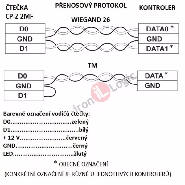 - čtecí protokol Wiegand – délka kabelů do 30 m
