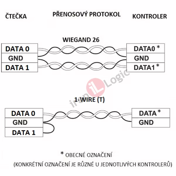 vzdálenost čtečka – kontrolér - Wiegand-26, Wiegand-34 – délka kabelů do 100 m