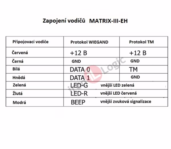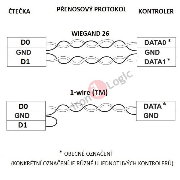 - čtecí protokol Wiegand 26 – délka kabelů do 30 m