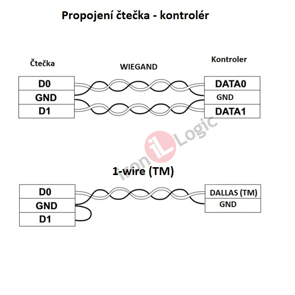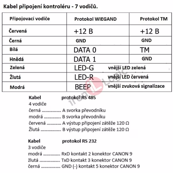 - čtecí protokol Wiegand 26 – délka kabelů do 30 m