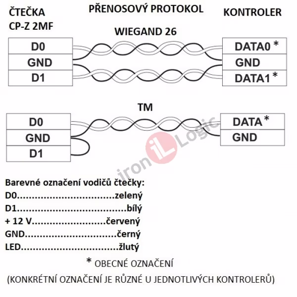 - čtecí protokol Wiegand-26, Wiegand-34 – délka kabelů do 30 m
