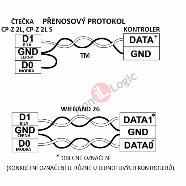 - čtecí protokol Wiegand – délka kabelů do 30 m