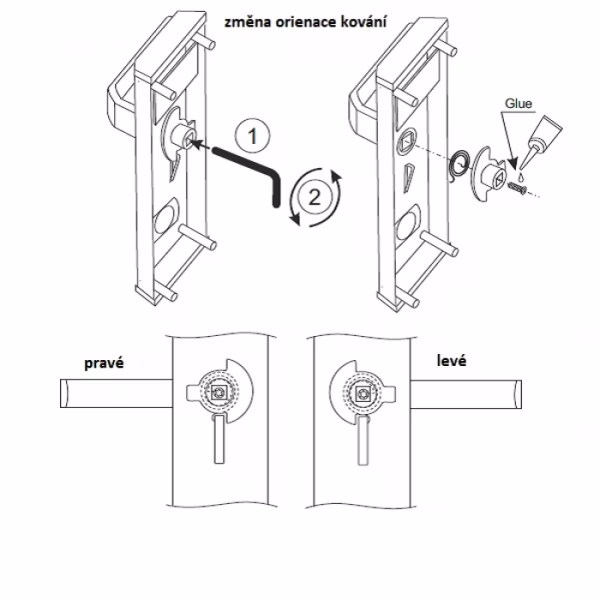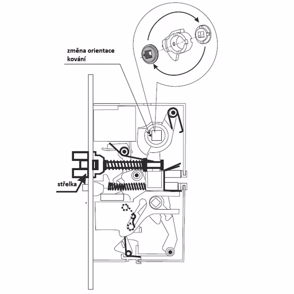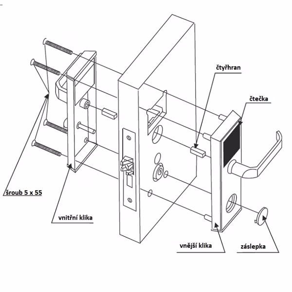 - sestava kování, zámek samozamykací, kontrolér, čtečka