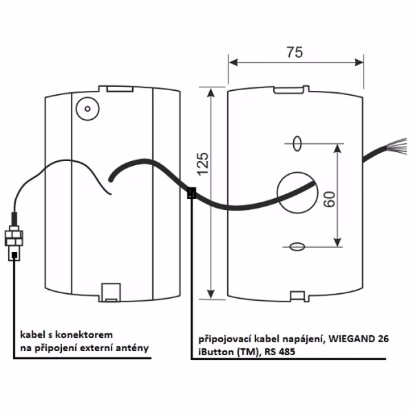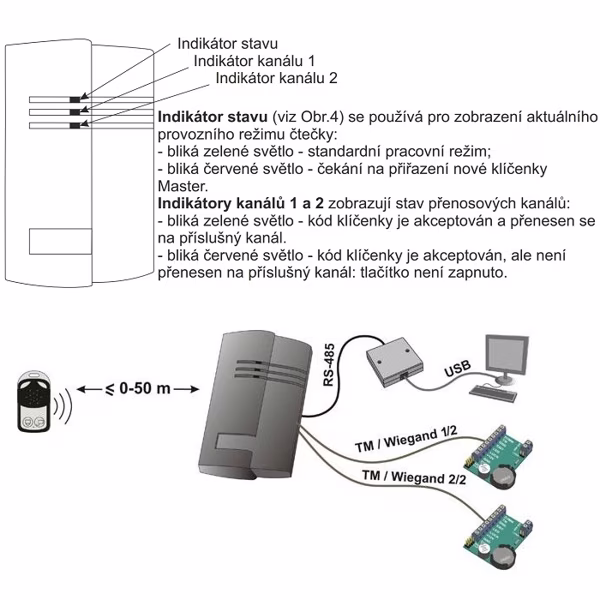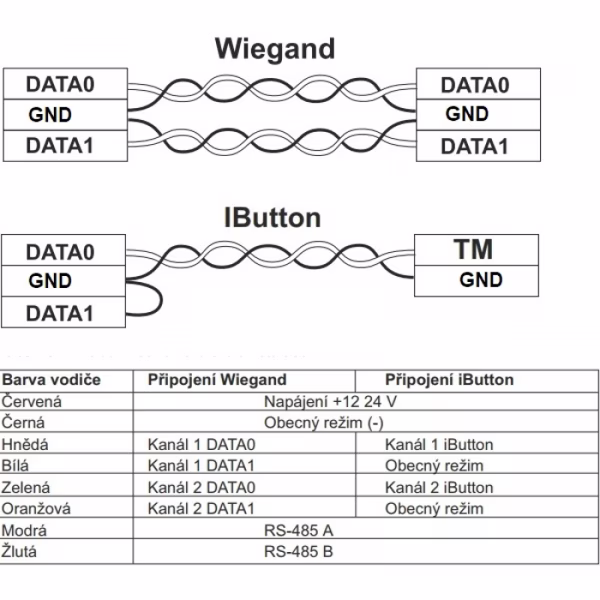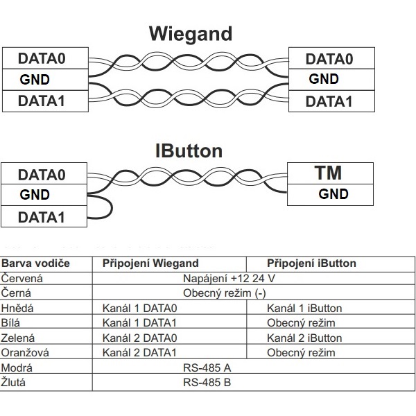 - čtecí protokol Wiegand 26 – délka kabelů do 30 m